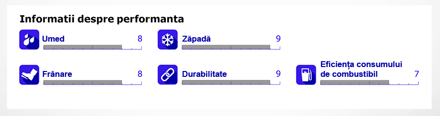 Nivelul de zgomotAnvelopele constribuie la nivelul de zgomot produs de masina. Cu cat nivelul de zgomot este mai mic, cu atat impactul asupra mediului incojurator este mai mic si in conformitate cu normele legislative.